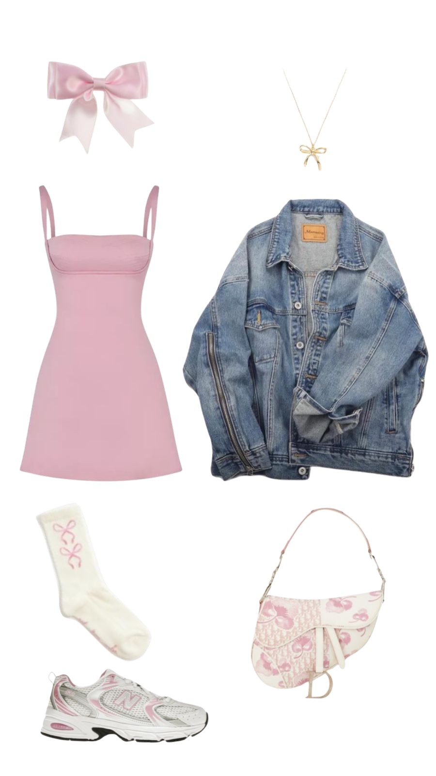 ✨Por que funciona: O sábado chega com a vibe perfeita pra um look fofo e confortável. O vestido rosa traz feminilidade, a jaqueta jeans dá aquele toque urbano e o tênis garante leveza. O laço é só pra lembrar: estilo também é diversão!